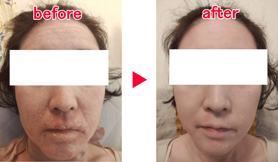 皮向けがバーっとしていたのが治まり、肌の色も赤かったのが少し肌色っぽくなり、これを続けるのは価値があると思いました。