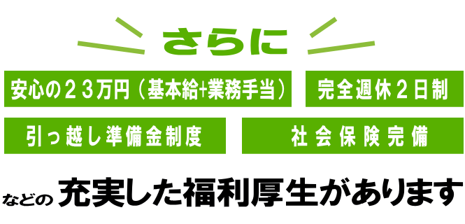 給与は初月から23万円(基本給+業務手当)スタート