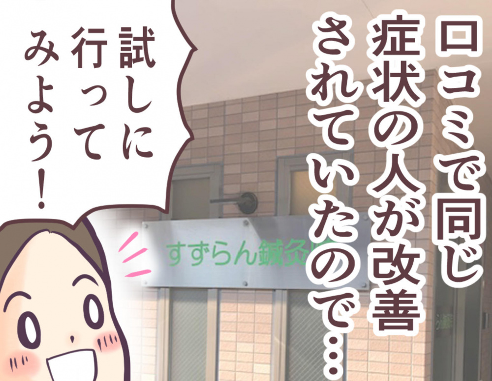 薬もやめたいしどうにかならないかとネットで色々調べた所この「すずらん鍼灸院」を見つけ試しに行ってみようと通い始めました。すると、ビックリ!1度の施術で首、肩がものすごく柔らかくなり、体が軽くて、軽くて驚きました。