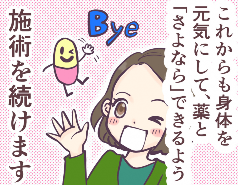 その後も週1で施術していくと体が変わっていくのがわかります。とても良い所を見つけたと友達にも紹介し友達も感動し通っています。これからも体を元気にして薬と「さよなら」出来るように施術を続けます。