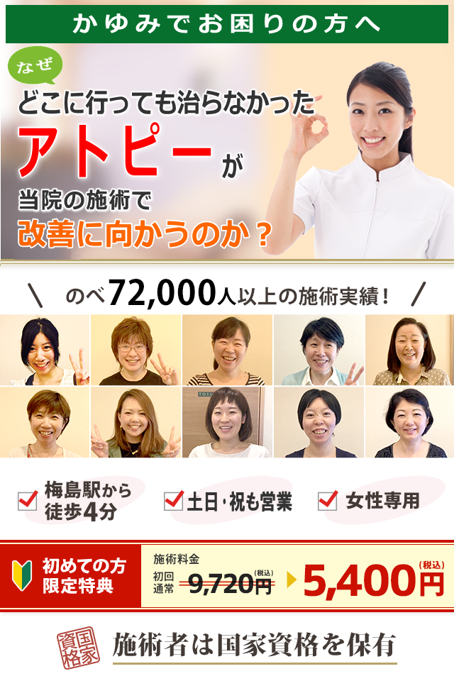 西洋医学ではダメなのかなと思って、ちょっとインターネットで調べてみたら、鍼とかお灸とかもアトピーに効くというのを聞きまして、それが来院のきっかけです。